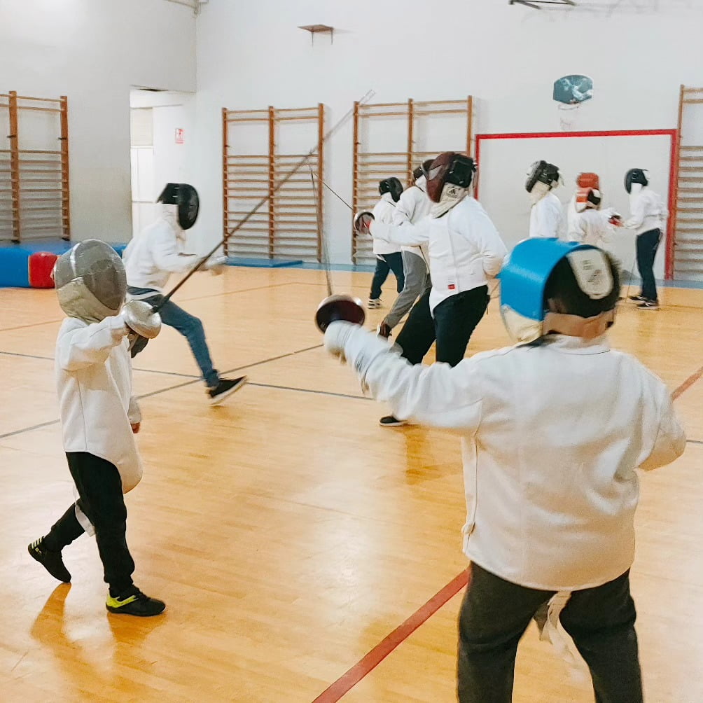 Técnica básica de espada, primeros asaltos y desarrollo de la coordinación.
